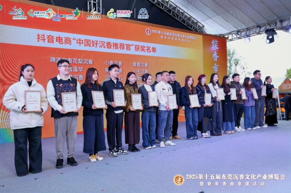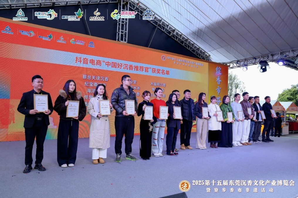 开幕式上,还分别为抖音电商“中国好沉香推荐官”、沉香行业“广东省价格认定专家”、“进莞香宴”特色餐饮企业颁牌。