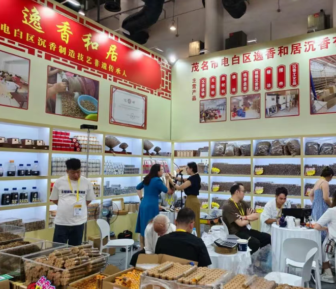 “逸香和居”“沙垌老乡厂”等展位,更以电白沉香种植规模、非遗制香技艺等核心优势,彰显产业底蕴。