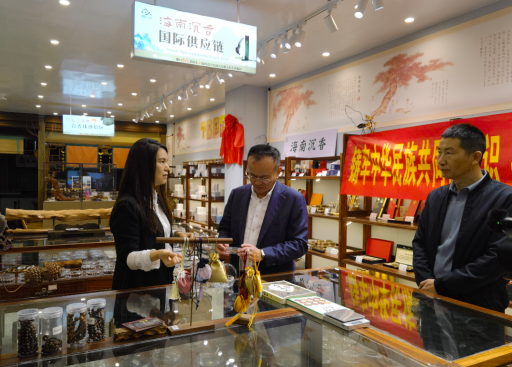 沉香网最新消息,2025年12月17日上午,海南省民委党组成员、副主任黎梁东,欧倬处长,蒋建军处长等一行4人莅临东坡老码头—古黎香•东坡香舍,参观了解古黎香的经营现状,并为古黎香•东坡香舍所属的海南尚锦文化发展有限公司获评“全国民族商品定点生产企业”揭牌。