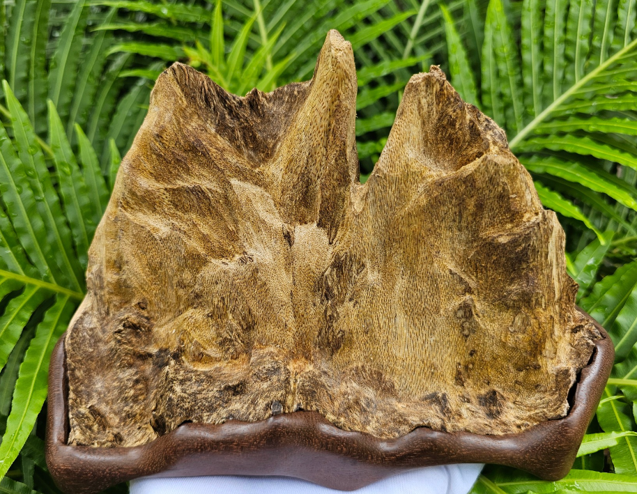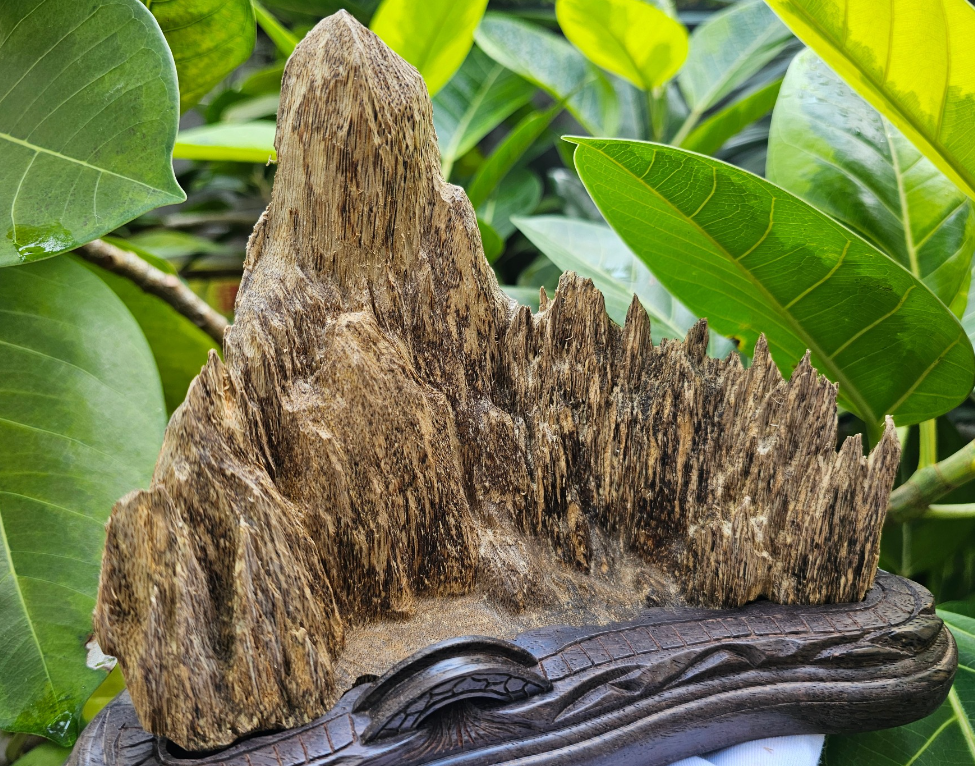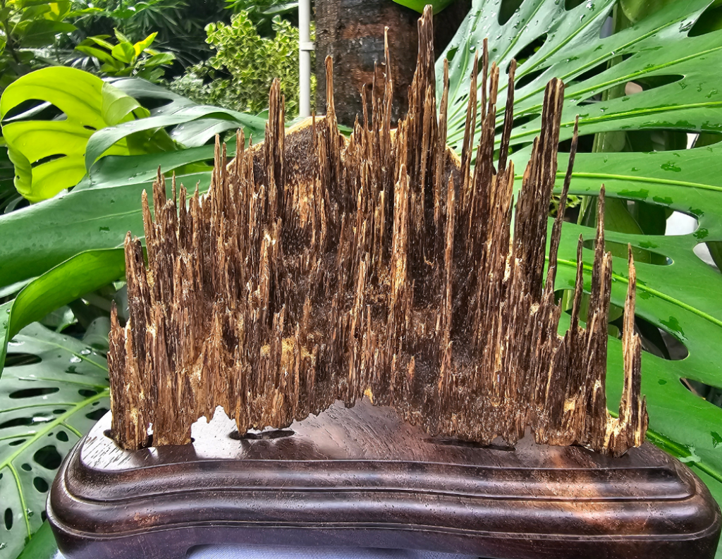 元符元年(1098)二月二十日是苏辙60岁生日,哥哥苏轼送给胞弟一块海南沉香山子,并以灿若披锦的文笔,写了一篇《沉香山子赋》作为贺礼;而今《沉香山子赋》以思与境偕,物我两冥的意境,成为推介海南沉香的首席美文。“矧儋崖之异产,实超然而不群。既金坚而玉润,亦鹤骨而龙筋。惟膏液之内足,故把握而兼斤。 ”海南产的沉香与其他香料都不同,超然不群,它的质地不仅像金子一样坚硬,而且像美玉一样油润,它的外形坚毅嶙峋,富有灵气,仿佛鹤骨龙筋。沉水级的沉香,内部油脂满溢,所以分量十足,放在掌内沉甸甸的。这一段既是描写沉香的美德,更是比喻君子的德性,苏轼借着赞美沉香以幽默调侃的语气来砥砺自己的弟弟,做一位品行坚定、精神超然的君子士大夫。