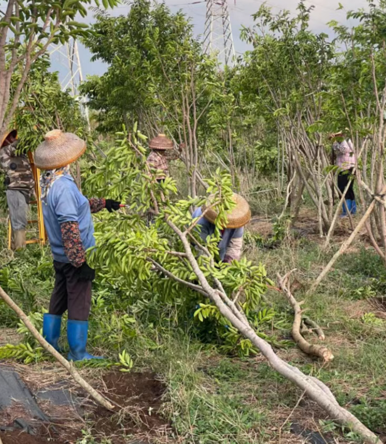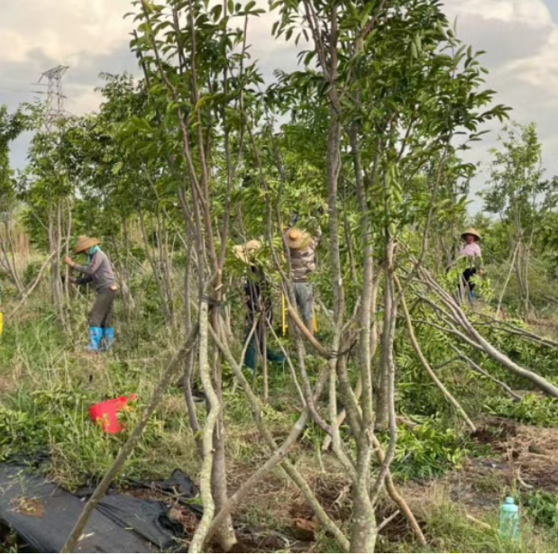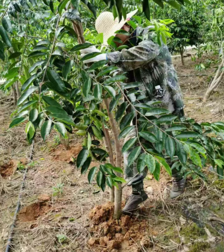 二、翻根的沉香树及时进行重新种植。种植时重新修剪树木,剪除受伤根系,用杀菌剂做好消杀工作,并及时浇水,保障水分供应。
