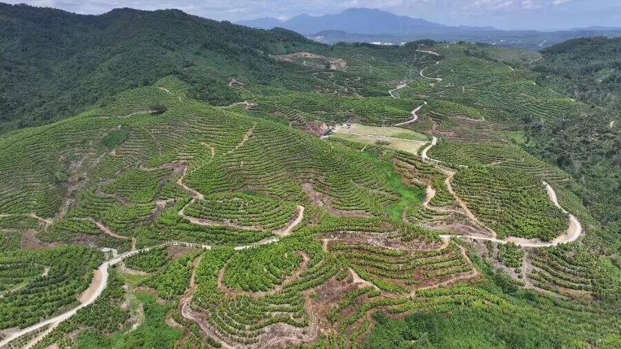 自2020年流转这片占地2.14万亩的沉香种植基地,至今已种植沉香树6700多亩,其中4万余株沉香已可采香,36万多株已经结香。
